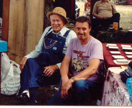 I am holding Bashful Brother Oswald's Dobro, which he called "Herman" Os' played this instrument for over fifty years with Roy Acuff's Smokey Mt. Boys. It is a model 27 roundneck model that was always tuned in "A" , which adds to it's unmistakable tone. I had the privilege recently of meeting Mike Webb, who is the present owner of "Herman", and he was gracious enough to let me play it . It was the only time that the hair stood up on the back of my neck from my own playing ! Listen and watch Mike Webb talk about Os' here